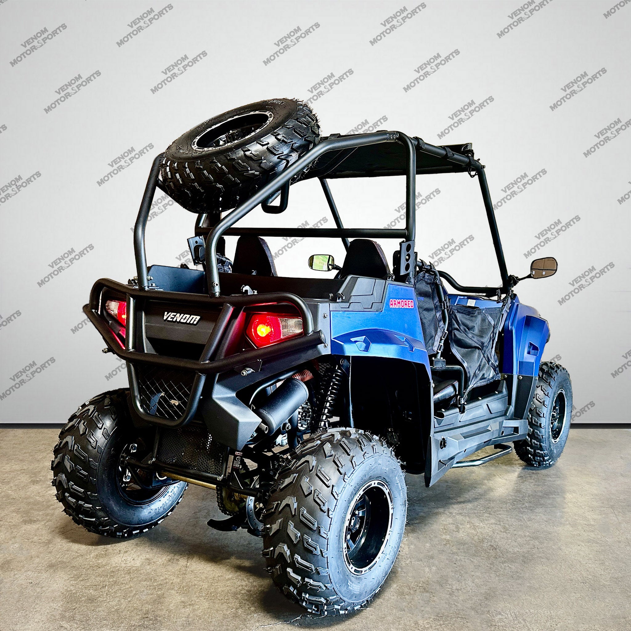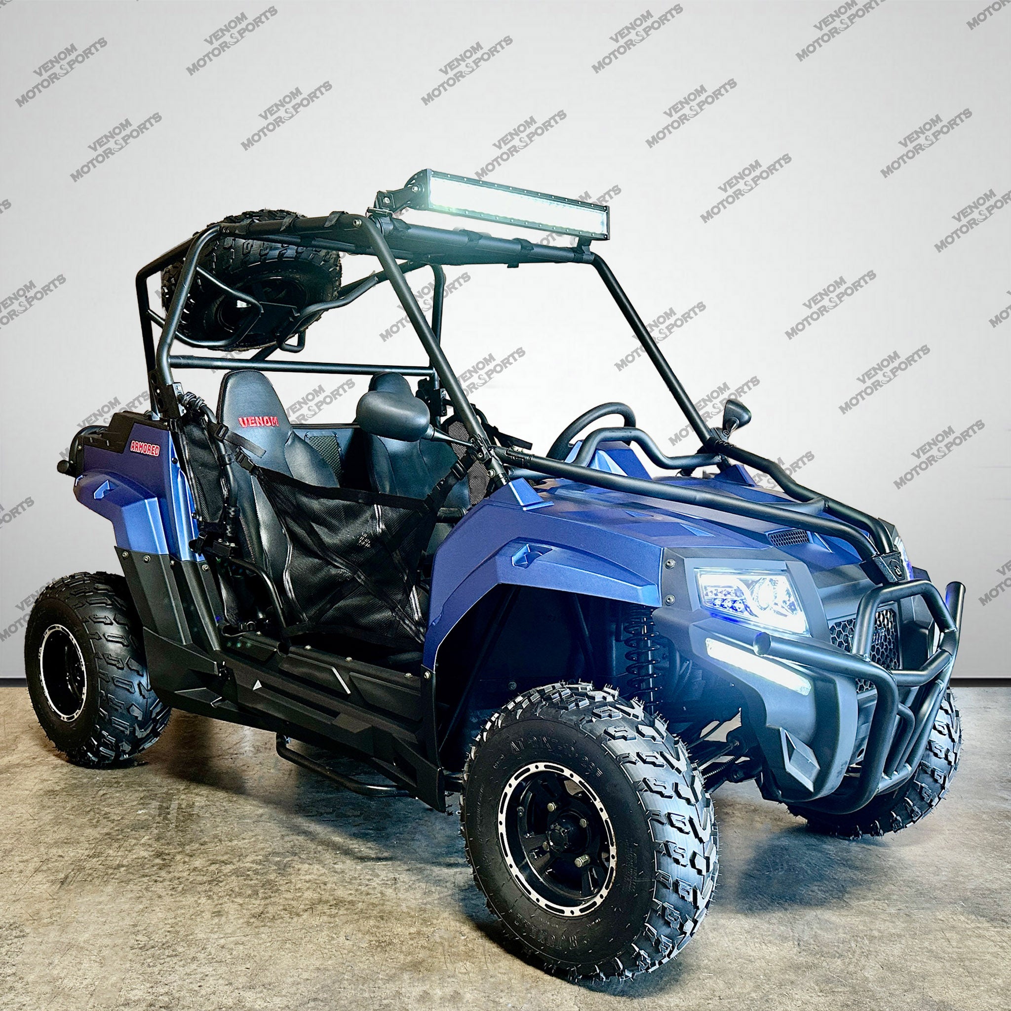 The Venom Armored 200 UTV SRU170RS is a versatile and cost-effective utility vehicle, perfect for tasks such as yard work, ranch activities, or off-roading. It comes in three color options: Black, Blue, and Red.