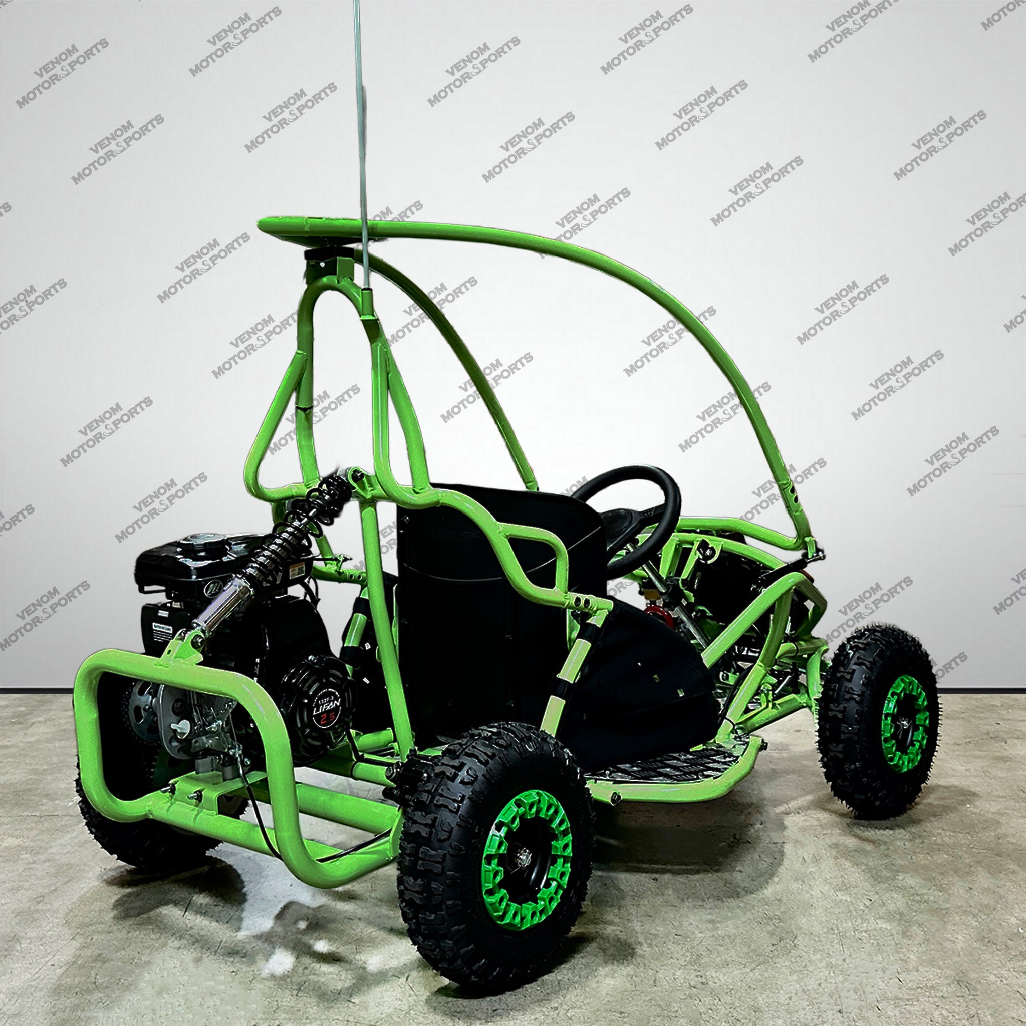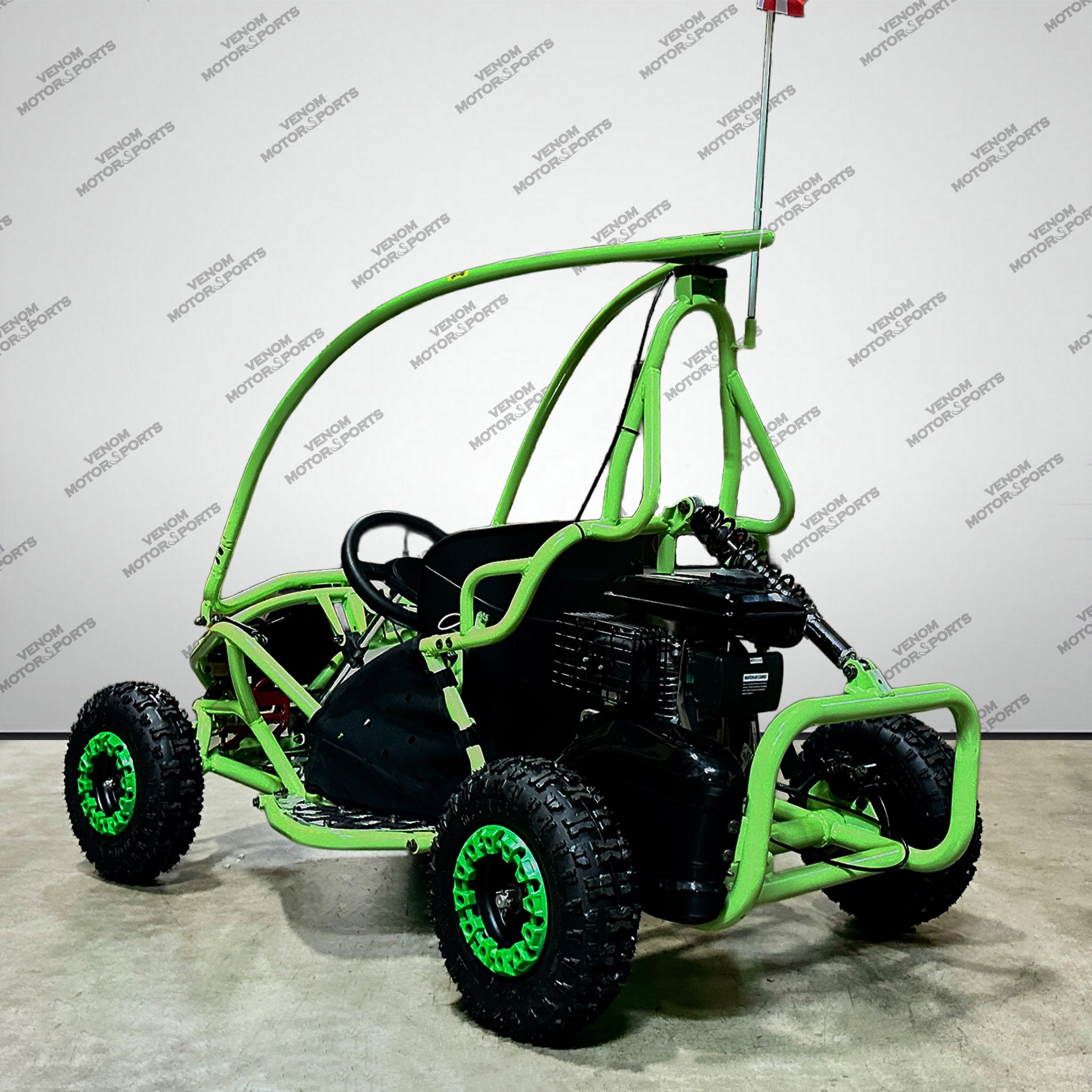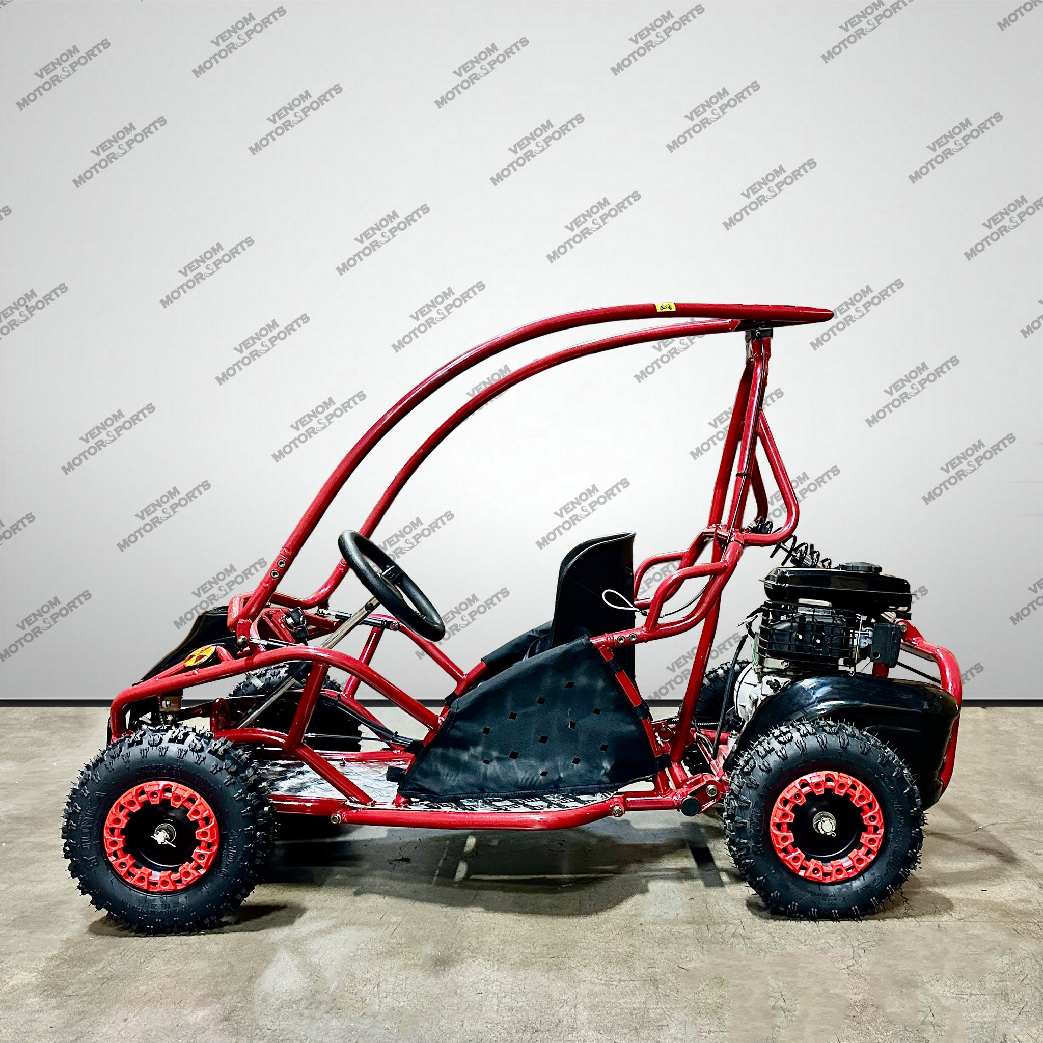 This gas-powered Venom Kids Speed Racer Go Kart is perfect for young riders aged 6 and up who want to immerse themselves in the world of motorsports. Experience the thrill of off-roading and join the fun with your very own dune buggy.