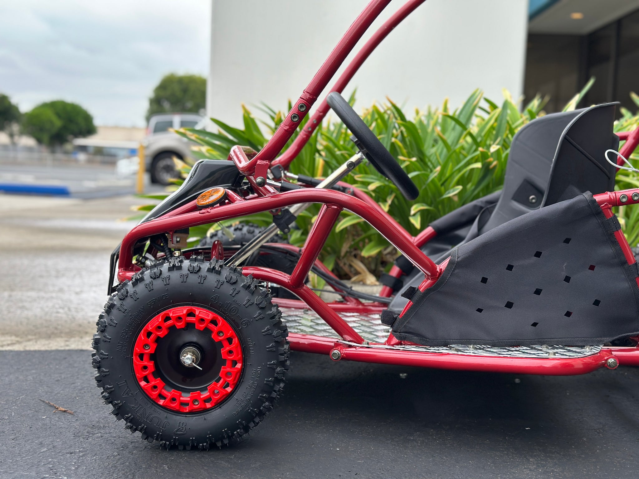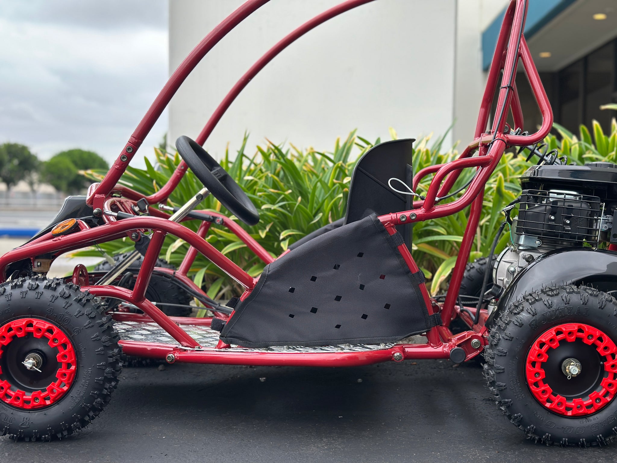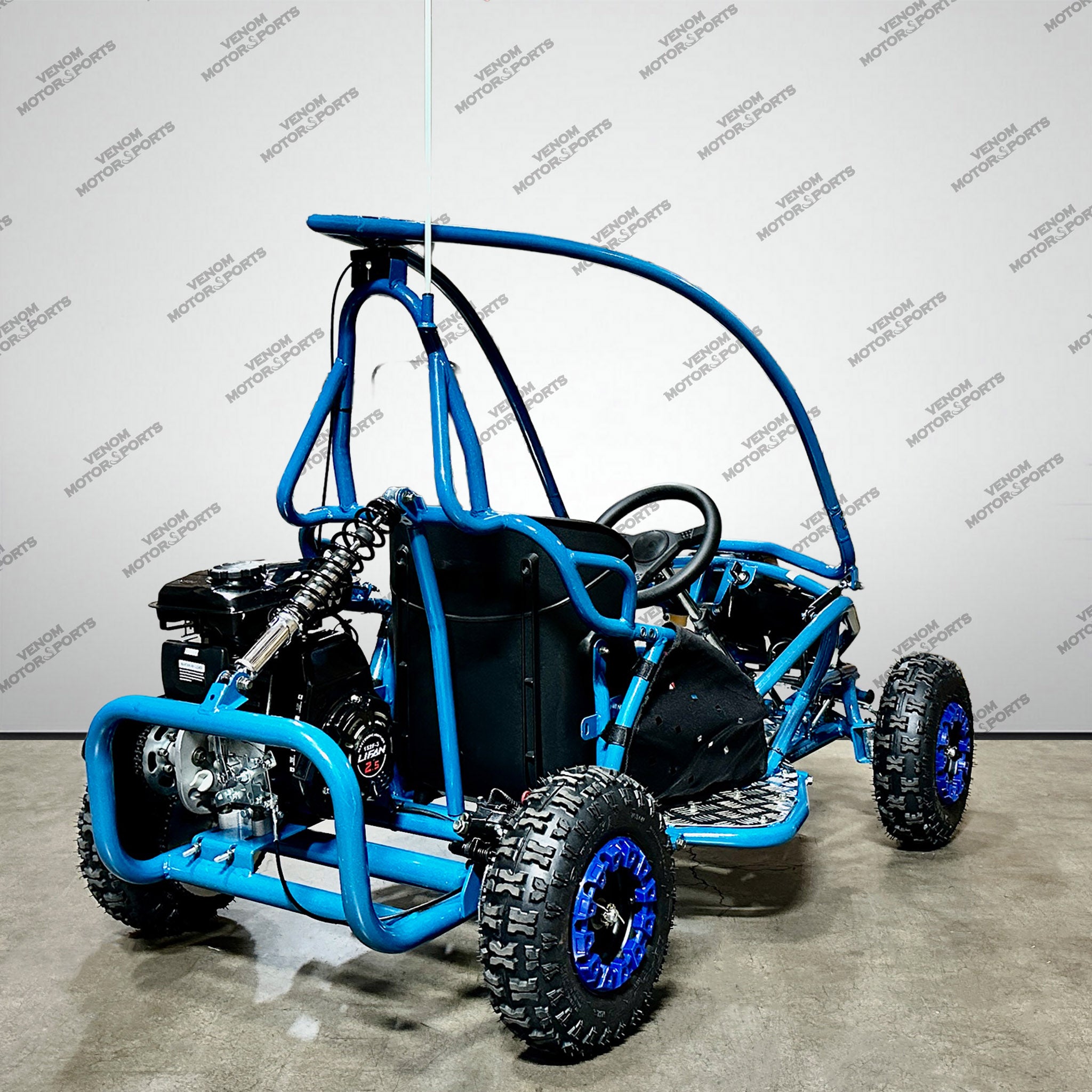 This gas-powered Venom Kids Speed Racer Go Kart is perfect for young riders aged 6 and up who want to immerse themselves in the world of motorsports. Experience the thrill of off-roading and join the fun with your very own dune buggy.