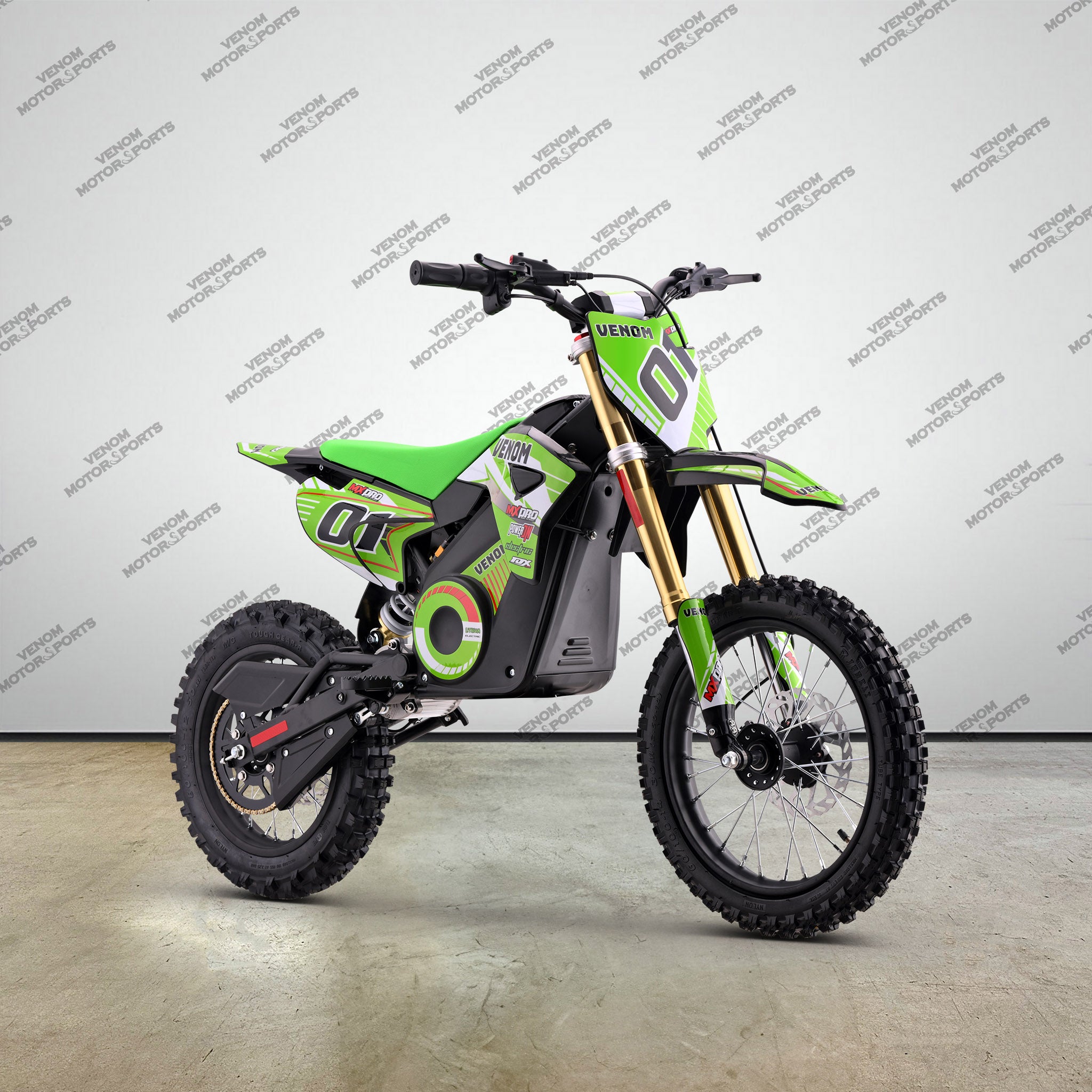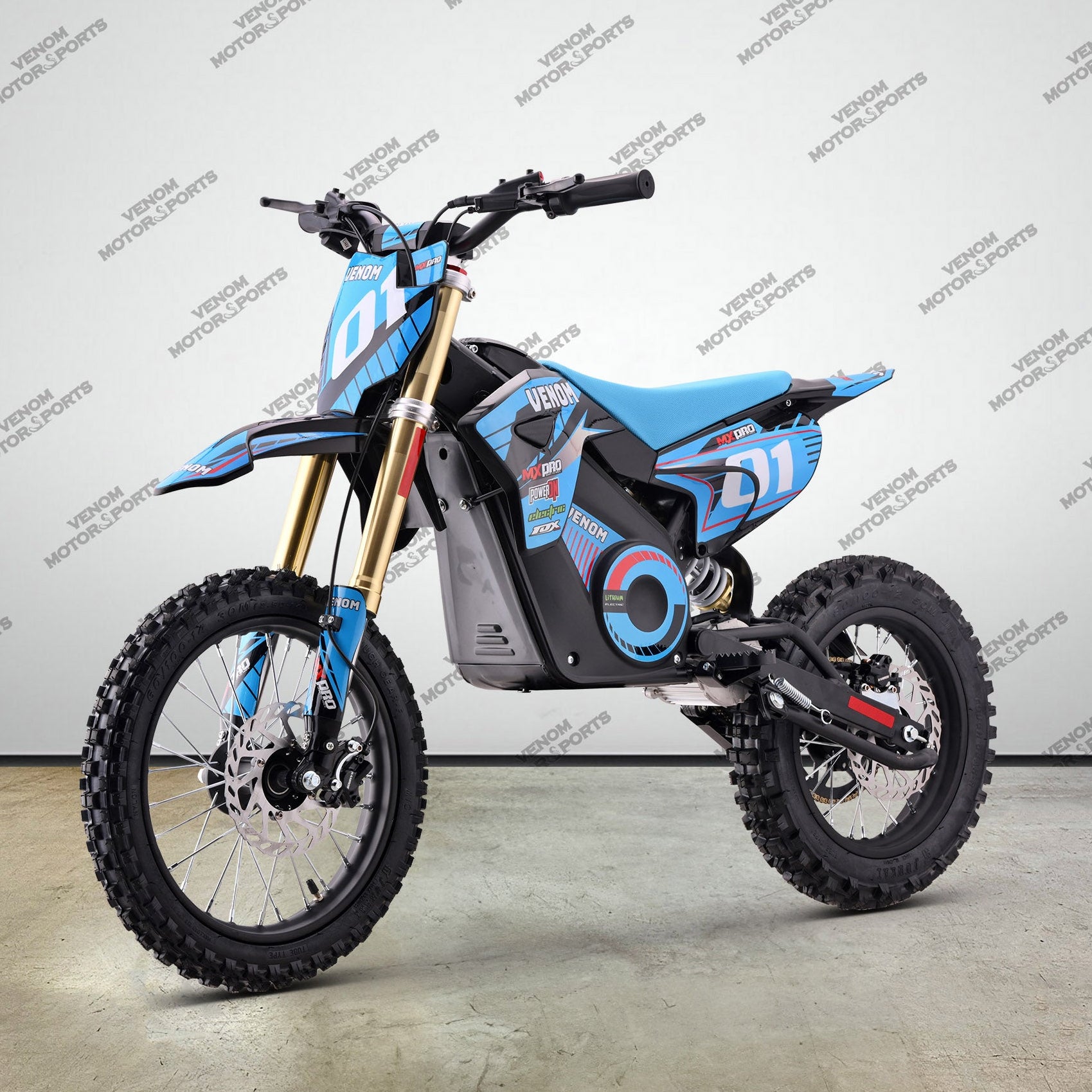 The Venom Pro is a powerful 1600w electric dirt bike, equipped with a 48V lithium battery. This lightweight version of the Suron offers an efficient and eco-friendly ride, perfect for off-road adventures. Experience the thrill of off-roading with the Venom Pro.
