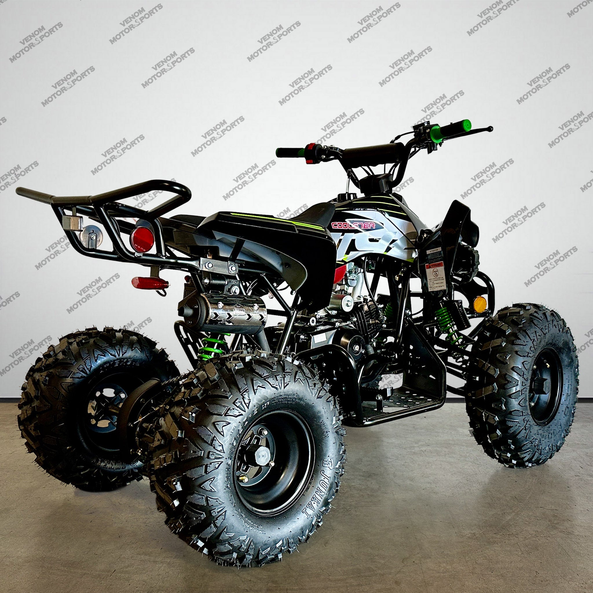 The Viper 125cc ATV is perfect for young riders 10 years and older seeking an entry level experience. With a speed governor and wireless remote kill switch, parents can feel at ease while the hydraulic disk brakes provide a safe and controlled ride. Let your child ride with confidence and excitement on the Viper 125cc ATV.